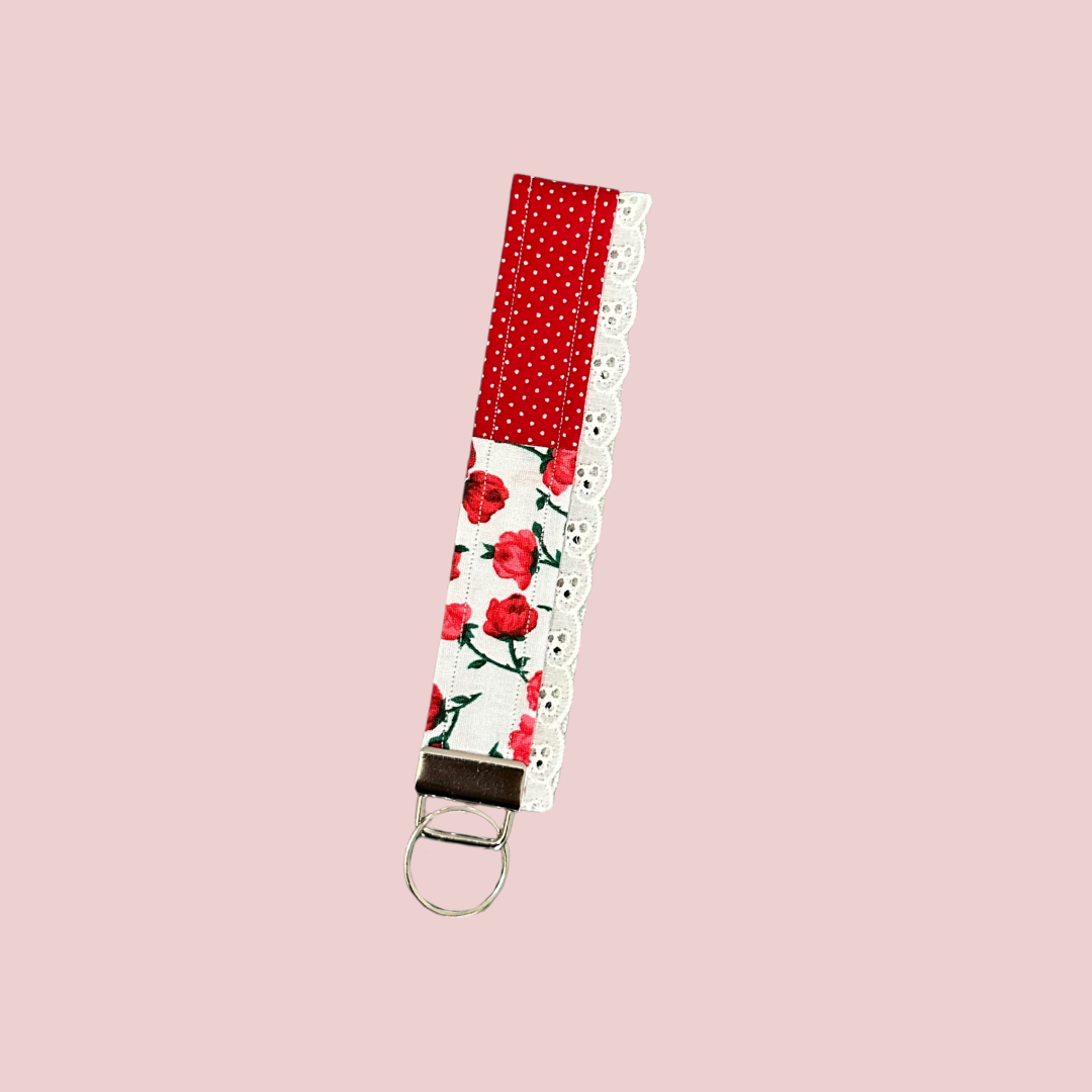 Red Roses & Polka Dot Lace Wristlet Keychain
