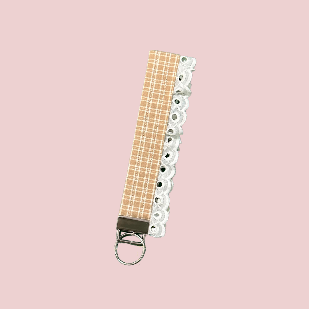 Tan Plaid Lace Wristlet Keychain